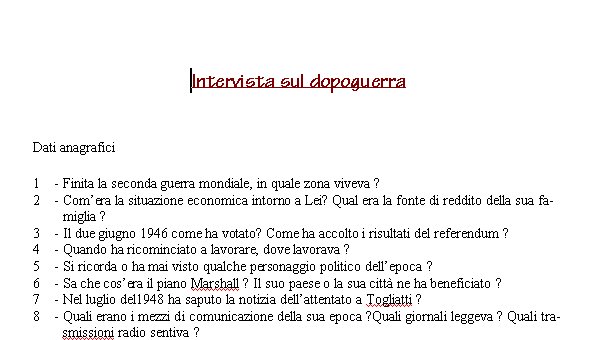 Tavole sinottiche ed interviste: il '900 nel tempo e nello spazio