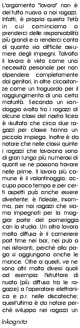 personale. Quindi lo svolgimento di un lavoro dà soprattutto la possibilità ai ragazzi di crescere