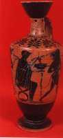 Lekythos attica a figure nere del Pittore di Phanyllis. Ulisse e Circe, da Taranto, 500 a.C. circa