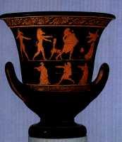 Cratere a calice attico a figure rosse del Pittore di Persefone. Ulisse minaccia Circe, da Taranto, 440 a.C. circa